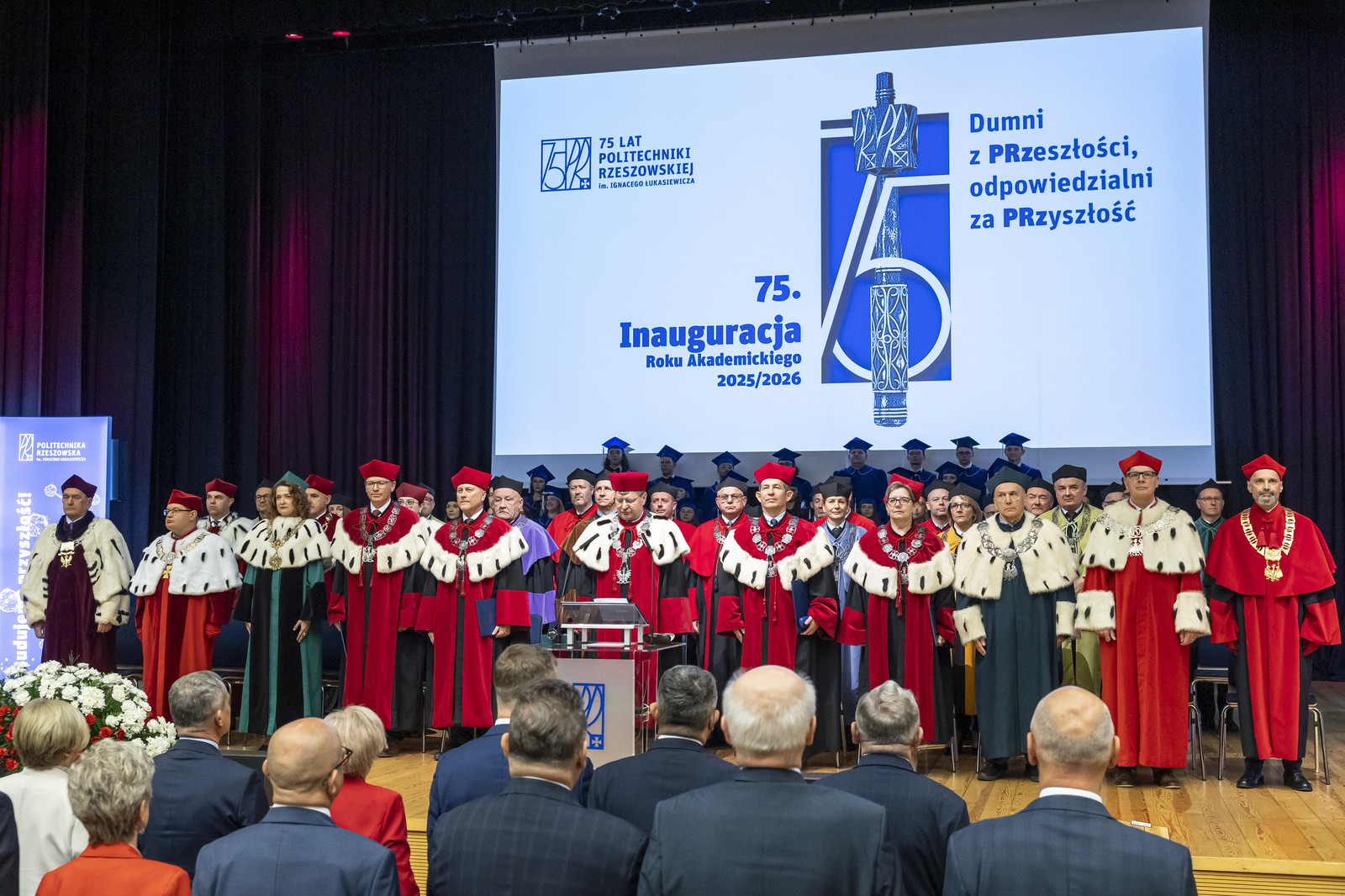 „Inauguracja roku akademickiego to nie tylko uroczystość, to także moment refleksji nad tym, czym jest uczelnia, kim jesteśmy jako jej członkowie i dokąd zmierzamy. W świecie pełnym niepewności uczelnia pozostaje jednym z ostatnich bastionów racjonalności, otwartości i dialogu. To nasza odpowiedzialność – chronić te wartości i przekazywać je kolejnym pokoleniom” – mówił rektor prof. Piotr Koszelnik podczas przemówienia inaugurującego jubileuszowy 75. rok akademicki na Politechnice Rzeszowskiej.