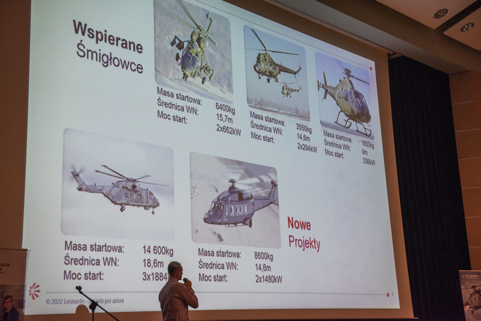 Przedstawiciele PZL-ŚWIDNIK a LEONARDO HELICOPTERS company opowiedzieli o kluczowych obszarach działalności firmy, tj. o Centrum Doskonałości Struktur Lotniczych, działach badawczo-rozwojowych, śmigłowcach, wsparciu klienta, szkoleniach. Przedstawili również specyfikę pracy w firmie, ofertę praktyk i staży dla studentów i uczniów odnośnie praktyk i staży oraz konkurs wiedzy z atrakcyjnymi nagrodami dla zwycięzców.