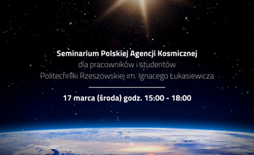 Polska Agencja Kosmiczna zaprasza studentów i pracowników Politechniki Rzeszowskiej na seminarium poświęcone tematyce kosmicznej.