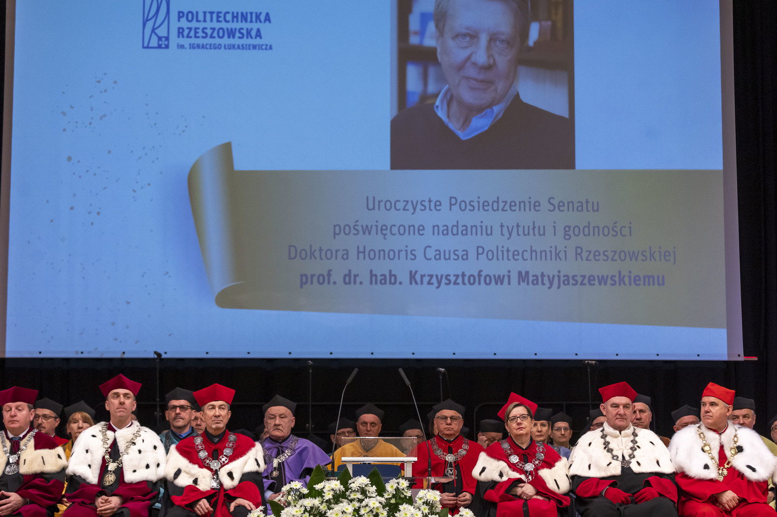 Tytuł i godność doktora honoris causa prof. Krzysztofowi Matyjaszewskiemu został nadany podczas uroczystego posiedzenia Senatu Politechniki Rzeszowskiej. W wydarzeniu uczestniczyli rektorzy i prorektorzy oraz naukowcy uczelni współpracujących z Politechniką Rzeszowską. Na uroczystość przybyli również przedstawiciele władz miasta i regionu, służb mundurowych, wielu instytucji współpracujących z naszą uczelnią i Wydziałem Chemicznym oraz pracownicy i studenci naszej uczelni.