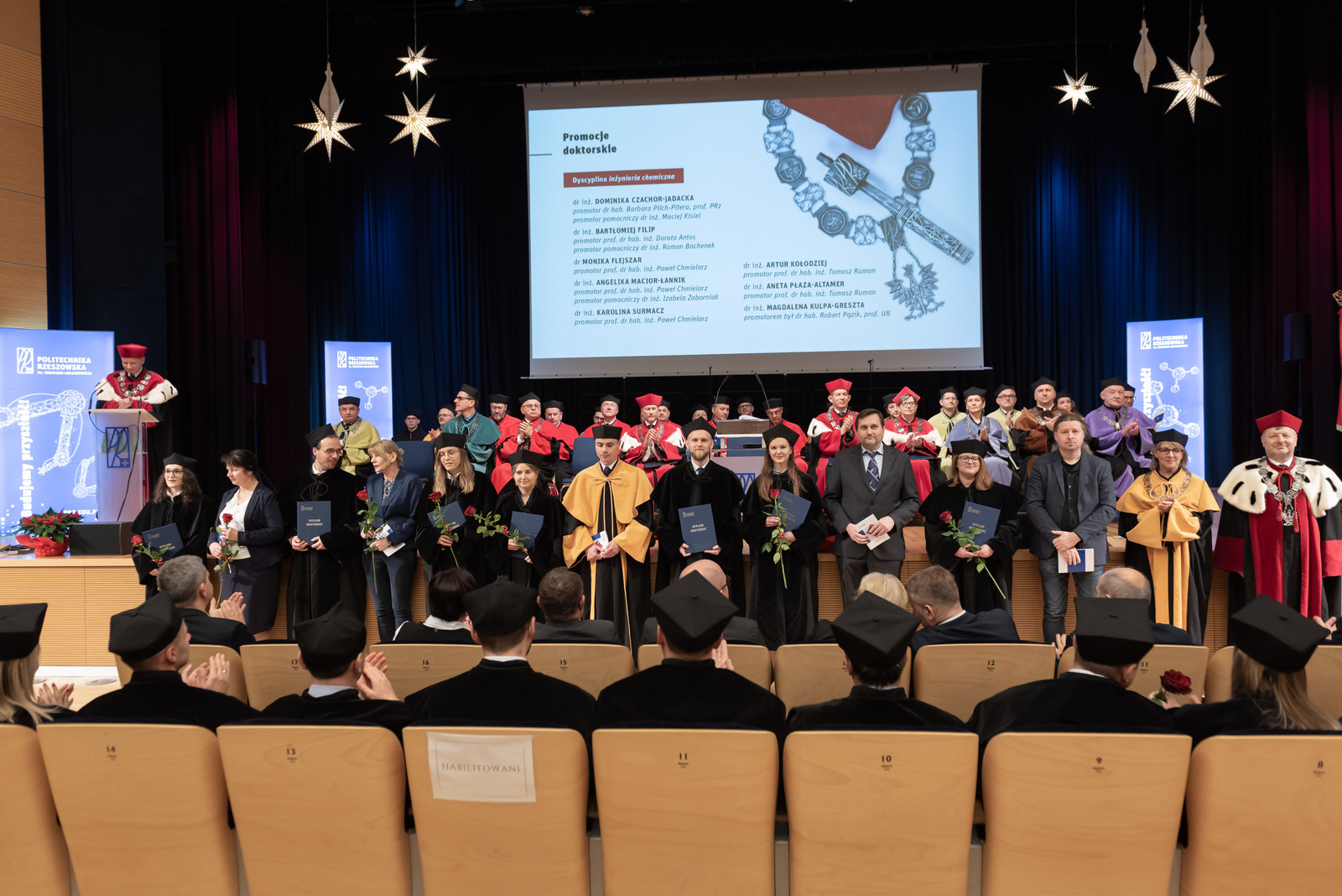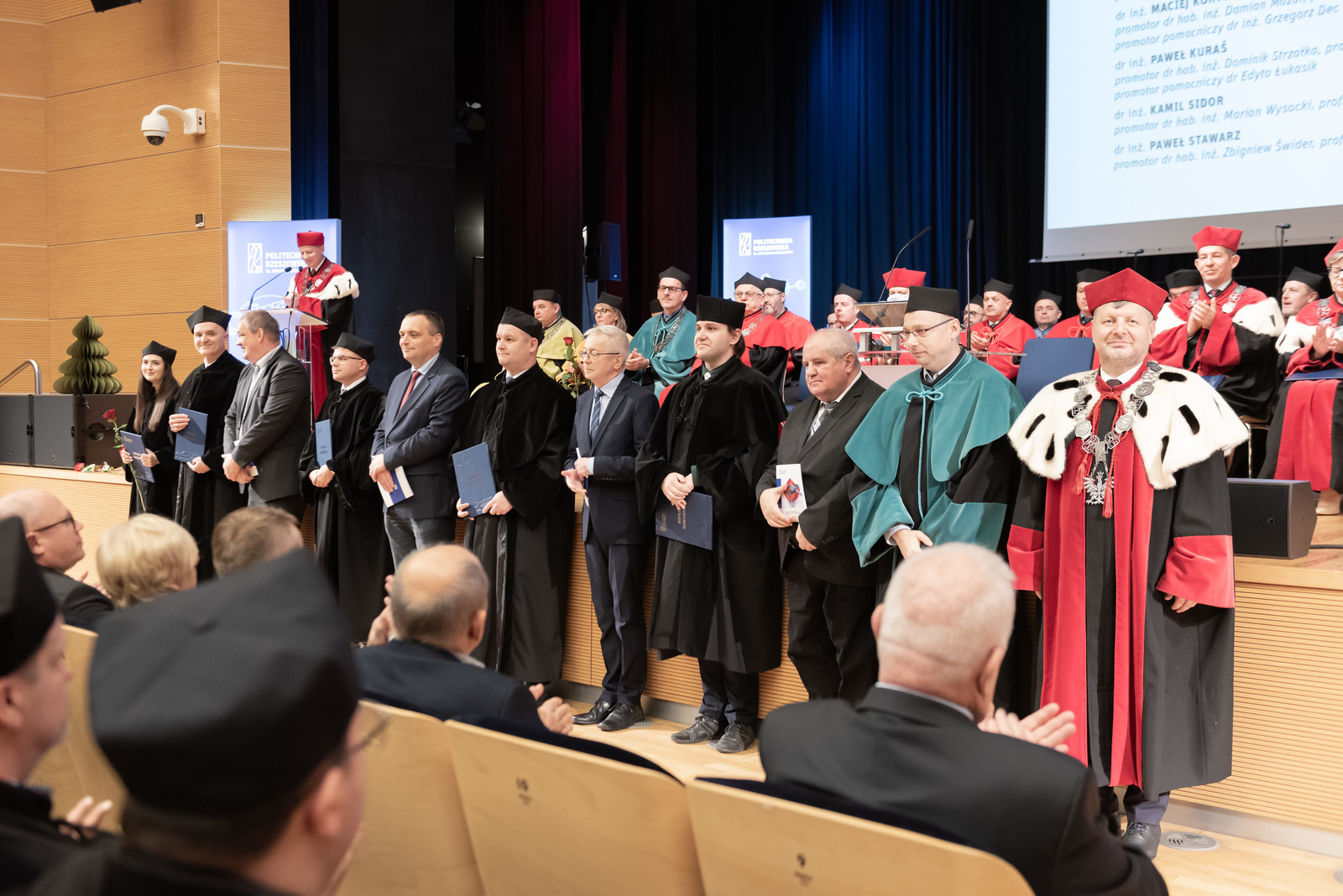 Stopnie doktora uzyskali: w dyscyplinie inżynieria lądowa, geodezja i transport: dr inż. Wioleta Iskra-Kozak, dr inż. Maria Pietras-Kozioł – promotor obydwu dr hab. inż. Janusz Konkol, prof. PRz, dr inż. Marta Kiernia-Hnat, dr inż. Wojciech Radwański – promotor obydwu dr hab. inż. Izabela Skrzypczak, prof. PRz, dr inż. Aleksander Siry – promotor dr hab. inż. Krzysztof Trojnar, prof. PRz, dr inż. Agnieszka Wiater – promotor prof. dr hab. inż. Tomasz Siwowski, w dyscyplinie inżynieria środowiska, górnictwo i energetyka: dr inż. Sylwia Gubernat – promotor prof. dr hab. inż. Piotr Koszelnik, dr inż. Beata Piotrowska – promotor prof. dr hab. inż. Daniel Słyś, w dyscyplinie inżynieria materiałowa – dr inż. Bogumił Cieniek – promotor dr hab. Ireneusz Stefaniuk, prof. UR, dr inż. Agnieszka Nalborczyk-Kazanecka – promotor dr hab. inż. Grażyna Mrówka-Nowotnik, prof. PRz, dr inż. Przemysław Poliński – promotor prof. dr hab. inż. Grzegorz Budzik, dr inż. Anna Pytel – promotor dr hab. inż. Andrzej Nowotnik, prof. PRz, dr inż. Artur Wojtyczka – promotor dr hab. inż. Marcin Drajewicz, prof. PRz, dr inż. Kamil Krystek – promotor dr hab. inż. Maciej Motyka, prof. PRz, w dyscyplinie inżynieria mechaniczna: dr inż. Damian Basara – promotor dr hab. inż. Leszek Skoczylas, prof. PRz, dr inż. Waldemar Daź – promotor dr hab. inż. Witold Habrat, prof. PRz, dr inż. Radosław Kołodziejczyk, dr inż. Kacper Pałkus – promotor obydwóch dr hab. inż. Piotr Strzelczyk, prof. PRz, dr inż. Artur Krzemiński – promotor prof. dr hab. inż. Kazimierz Lejda, dr inż. Waldemar Łogin – promotor prof. dr hab. inż. Romana Ewa Śliwa, dr inż. Rafał Muchowski – promotor dr hab. inż. Andrzej Majka, prof. PRz, dr inż. Ewelina Ozga – promotor dr hab. inż. Władysław Zielecki, prof. PRz, dr inż. Mateusz Przytuła, dr inż. Damian Żelechowski – promotor obydwóch prof. dr hab. inż. Grzegorz Budzik, dr inż. Marek Szewczyk – promotor prof. dr hab. inż. Tomasz Trzepieciński, dr inż. Grzegorz Szyszka – promotor prof. dr hab. inż. Jarosław Sęp, dr inż. Wiktoria Wojnarowska – promotor dr hab. inż. Sławomir Miechowicz, prof. PRz, dr inż. Magdalena Zajdel – promotor prof. dr hab. inż. Mariusz Oleksy, w dyscyplinie inżynieria chemiczna – dr inż. Dominika Czachor-Jadacka – promotor dr hab. Barbara Pilch-Pitera, prof. PRz, dr inż. Bartłomiej Filip – promotor prof. dr hab. inż. Dorota Antos, dr Monika Flejszar, dr inż. Angelika Macior-Łannik dr inż. Karolina Surmacz – promotor prof. dr hab. inż. Paweł Chmielarz, dr inż. Artur Kołodziej, dr inż. Aneta Płaza-Altamer – promotor obydwu prof. dr hab. inż. Tomasz Ruman, dr inż. Magdalena Kulpa-Greszta – promotor dr hab. Robert Pązik, prof. UR, w dyscyplinie automatyka, elektronika, elektrotechnika i technologie kosmiczne: dr inż. Kamil Filik − promotor dr hab. inż. Grzegorz Masłowski, prof. PRz, w dyscyplinie informatyka techniczna i telekomunikacja: dr inż. Anna Czmil, dr inż. Maciej Koryl – promotor obydwóch dr hab. inż. Damian Mazur, prof. PRz, dr inż. Paweł Kuraś – promotor dr hab. inż. Dominik Strzałka, prof. PRz, dr inż. Kamil Sidor – promotor dr hab. inż. Marian Wysocki, prof. PRz, dr inż. Paweł Stawarz – promotor dr hab. inż. Zbigniew Świder, prof. PRz, w dyscyplinie matematyka: dr Adrian Michalski – promotor dr hab. Iwona Włoch, prof. PRz.