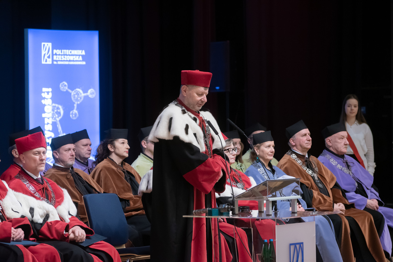 Dyplomy wręczyli rektor prof. Piotr Koszelnik oraz przewodniczący rad dyscyplin – Rady Dyscypliny Inżynieria Lądowa i Transport prof. dr hab. inż. Tomasz Siwowski, Rady Dyscypliny Inżynieria Środowiska, Górnictwo i Energetyka prof. dr hab. inż. Daniel Słyś, Rady Dyscypliny Inżynieria Materiałowa dr hab. inż. Maciej Motyka, prof. PRz, Rady Dyscypliny Inżynieria Mechaniczna prof. dr hab. inż. Andrzej Burghardt, Rady Dyscypliny Inżynieria Chemiczna prof. dr hab. inż. Beata Mossety-Leszczak, prof. PRz, Rady Dyscypliny Automatyka, Elektronika, Elektrotechnika i Technologie Kosmiczne prof. dr hab. inż. Andrzej Kolek, Rady Dyscypliny Informatyka Techniczna i Telekomunikacja dr hab. inż. Mariusz Oszust, prof. PRz, Rady Dyscypliny Matematyka dr hab. Liliana Rybarska-Rusinek, prof. PRz.