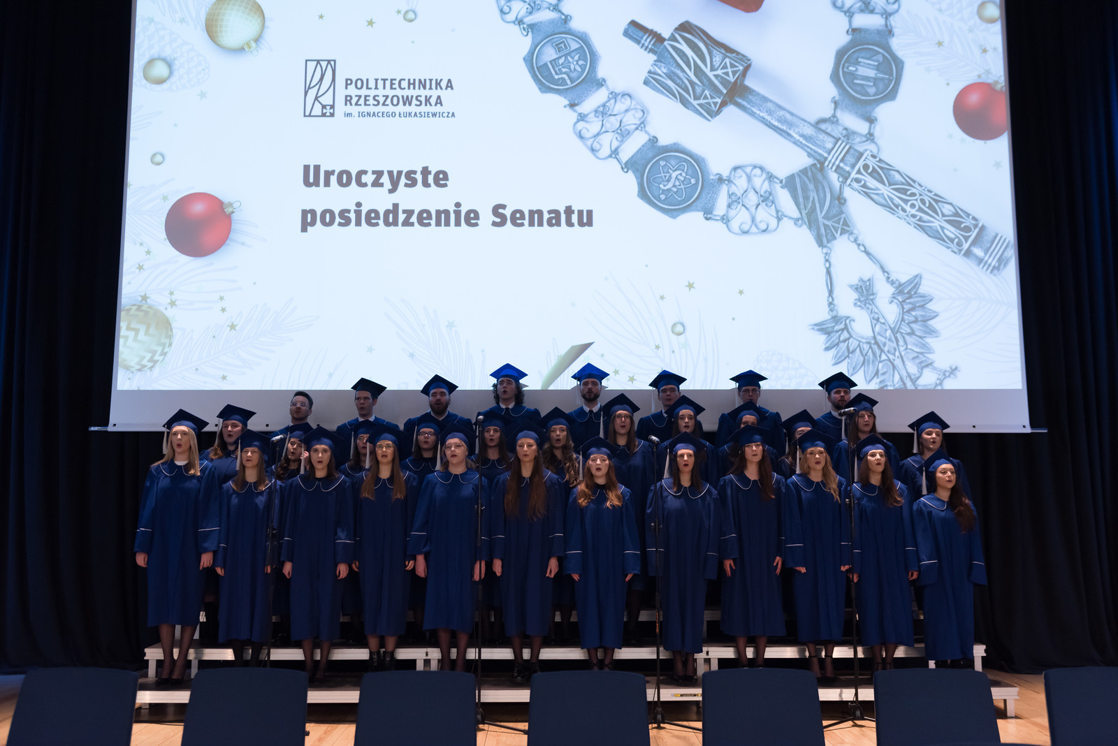 Oprawę muzyczną posiedzenia Senatu zapewnił Chór Akademicki Politechniki Rzeszowskiej.